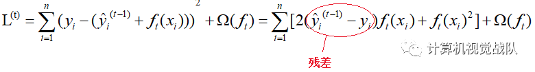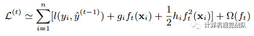 预测值在每一次迭代中加入一个新的函数f目的是使目标函数尽量最大地降低。 因为我们的目标是最小化L(φ)时得到模型f(x),但是L(φ)中并没有参数f(x),所以,我们将上图中的最后一式代入L(φ)中可得到如下式子: