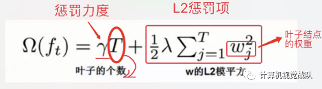 如果叶子结点的个数太多,那么过拟合的风险会越大,所以这里要限制叶子结点的个数,所以在原来目标函数里要加上一个惩罚项「omega(ft)」。