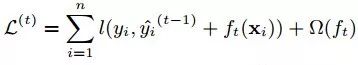 在XGBoost里,每棵树是一个一个往里面加的,每加一个都是希望效果能够提升,下图就是XGBoost这个集成的表示(核心)。