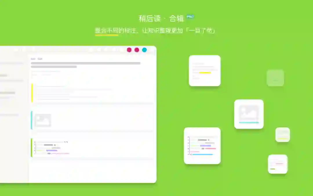 正如简悦 1.0 解决了传统阅读模式的痛点一样,如果你的稍后读变为了「稍后不读」的话,合辑正是解决这个痛点的「银弹」。