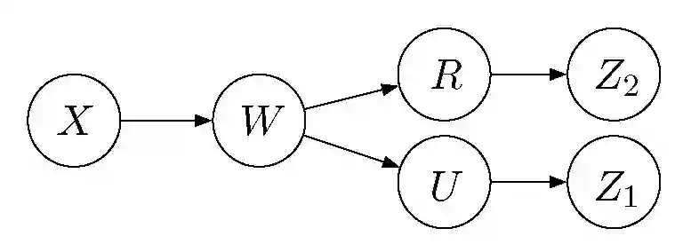 图 1. 数据 X 与私有对 (Z1,Z2) 之间的马尔可夫图形结构.
