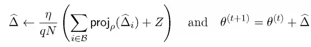 针对初始化本地参数 theta_0,本地运行模型计算后得到更新后的参数 theta_i,则私有化处理本地差异:delta_i:=(1/eta)(theta_i-theta_0),delta_i 为随机梯度映射,其中的按步长的缩放实现一致的预期更新量。执行下面的处理: