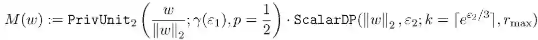 其中的投影操作 proj 限制任何单个更新的贡献,向量 Z~N(0,sigma.^2)是高斯分布的且能提供集中的隐私保证,具体表示为 sigma.^2。本文提出的隐私机制主要应用是最小最大化速率最优的私有(分布式)统计学习场景。对于本地私有模型拟合,梯度或影响函数的大小估计非常具有挑战性,此外更新的规模也是至关重要的。通过私有化数据对 (U,R) 的方式传输随机映射 W:方向为 U=W/||W||_2、大小为 R=||W||_2。令 Z_1=M_1(U) 以及 Z_2=M_2(R) 为 W 的私有化形式,见图 1: