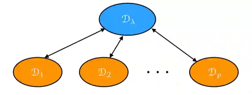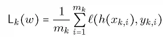 考虑这样一个机器学习场景,学习者接收到 p 个样本 S1,...,Sp,其中样本 Sk 为从专门域或分布 Dk 提取的 IID 数据,(D_k)^表示样本 Sk 相关的经验分布。经典联邦学习的训练是在所有样本 Sk 的联合均匀分布情况下进行的,即