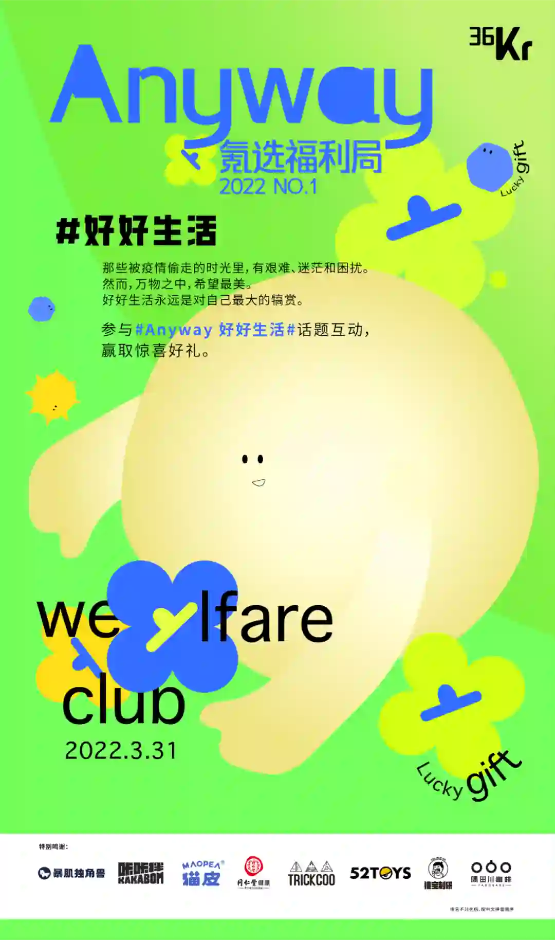 每一个好好生活的故事背后,都是一个普通人对生活的执着,他们热爱世界,热爱万物,热爱众生。我们从话题参与者中随机挑选,送出666份诚意满满的Anyway「氪选福利局」的惊喜盲盒。