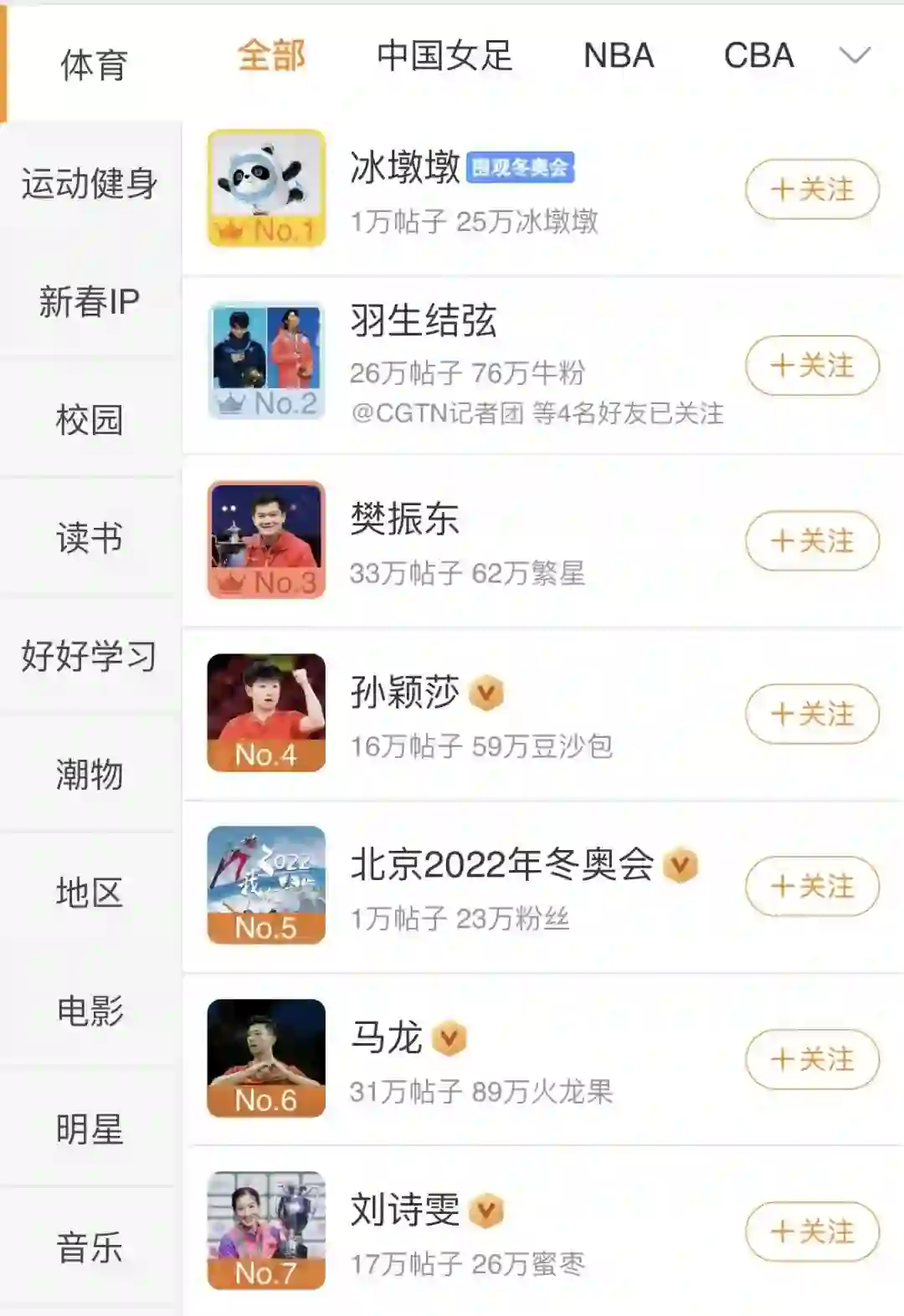 2月4日,冬奥会开幕式当晚,冰墩墩在微博体育超话排行榜冲到第6。现在打开体育超话,冰墩墩已稳坐“体育明星” NO.1的位置,超越羽生结弦、樊振东、孙颖莎和马龙等奥运冠军选手。