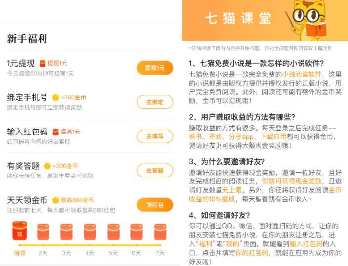 对于一款小说产品来说,金币和现金激励固然可以激活用户,提高用户留存。但阅读是一切的基础,也是产品核心价值所在,产品自然要在这里引入可以让人上瘾的元素——新手阅读福利。