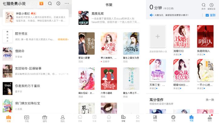 △ 七猫小说、番茄小说、米读小说的首页页面