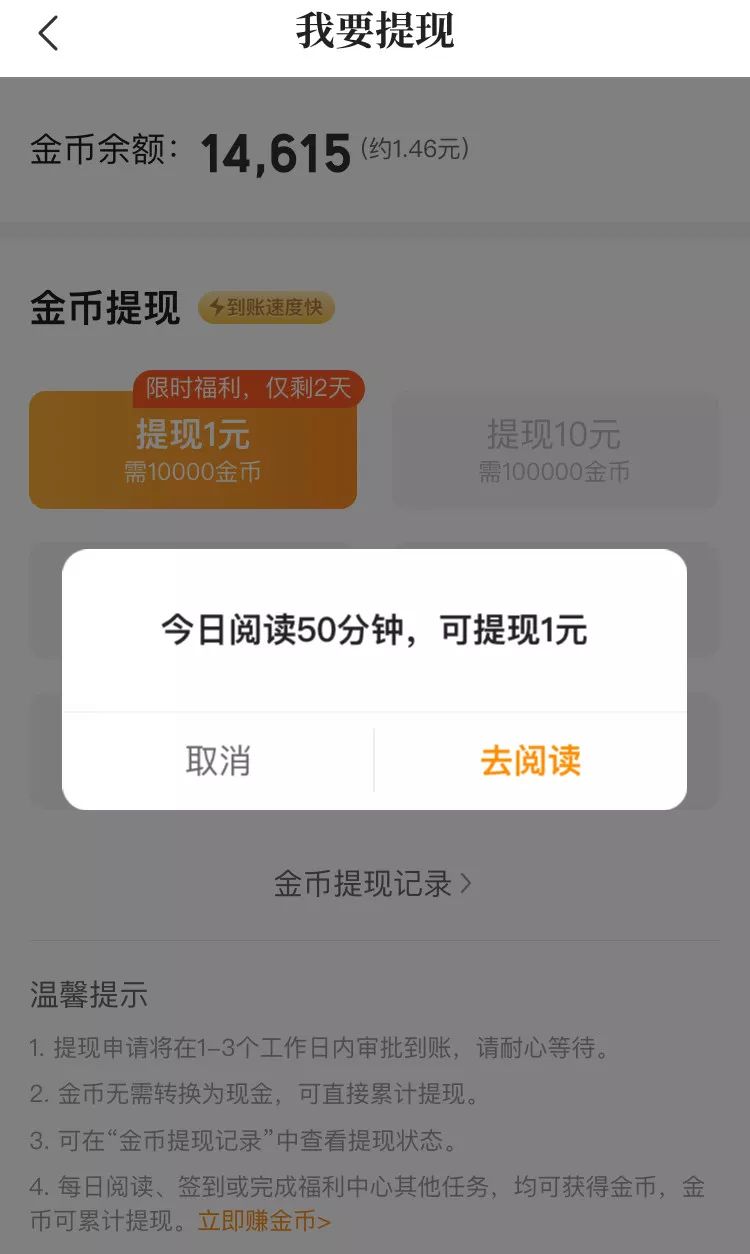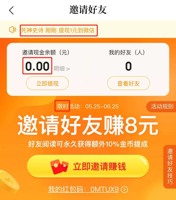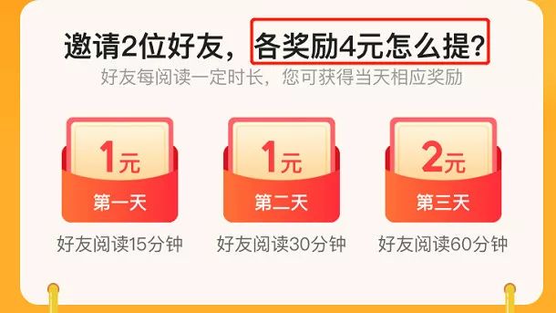 第二,邀请好友的现金怎么可以获得和提现。需要好友阅读三天,且达到一定时间。