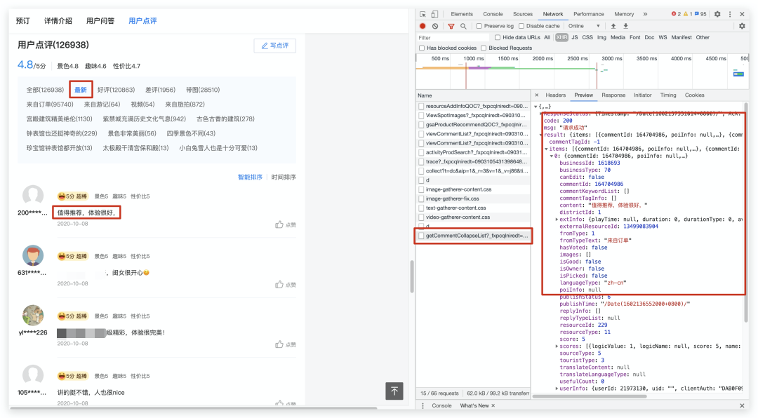 但由于我们只需要国庆期间的数据,最多的景点也不过100多页评论,所以另外一种方法是使用Selenium模拟浏览器操作也可以轻松成功拿下数据,之后使用pandas清洗即可。