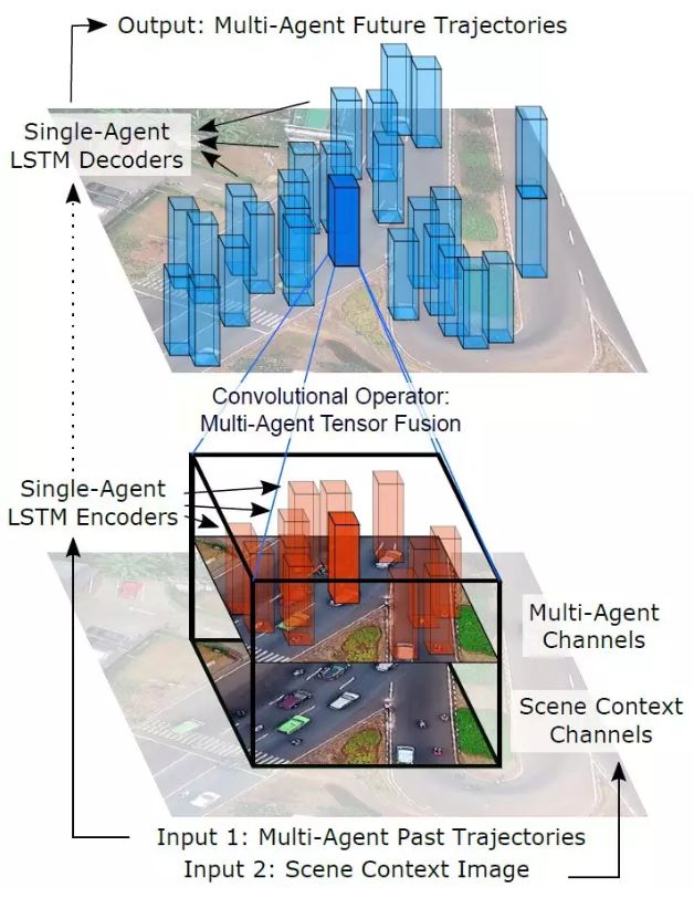 AI 科技评论按,本文是计算机视觉领域国际顶级会议 CVPR 2019 入选论文《Multi Agent Tensor Fusion for Contextual Trajectory Prediction》的解读。该论文由 MIT 支持的自动驾驶初创公司 ISEE Inc,北京大学王亦洲课题组,UCLA,以及 MIT CSAIL 合作共同完成。该论文主要提出了一种基于深度学习的车辆和行人轨迹预测方法,提出了一个可以保持空间结构信息的多智能体张量融合网络,在机动车驾驶和行人轨迹数据集中对模型的性能进行了验证。