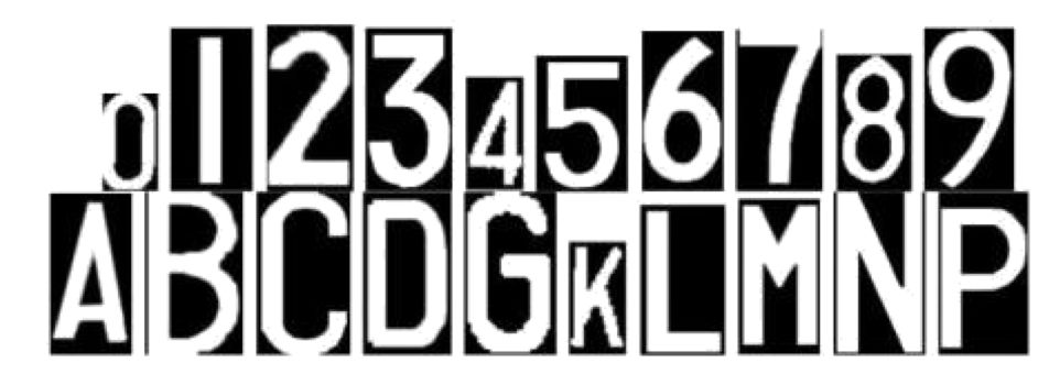 首先建立一个字符模板数据库,用于字符匹配。该方案中需要识别的字符只有英文和字母,因此数据库不大。