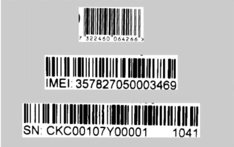检测对象:手机产品条码(包括产品码、 SN码、 IMEI 码)