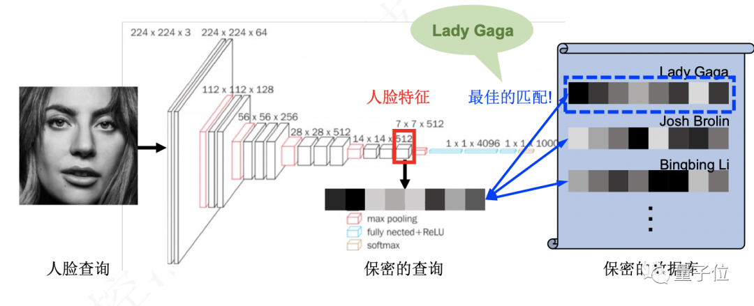 通过多方计算平台,查询方在查询人脸信息时,只会得到匹配的结果,平台和数据源均无法得知查询意图和查询结果。