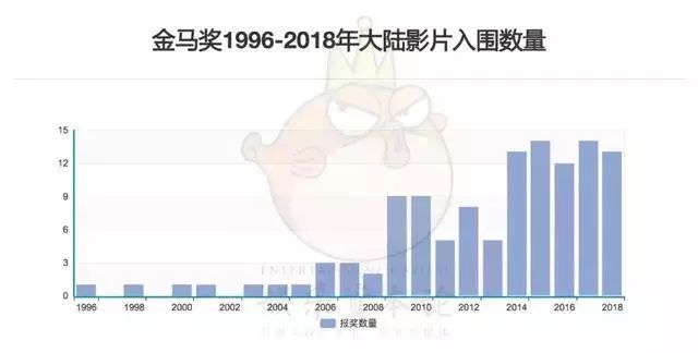 2003年以后,随着大陆电影产业化发展,金马奖入围数量与报名数量都呈小幅增长趋势。而到了2011年以后,金马奖报名数量每年有较大增幅,大陆影片入围数量也整体提高。