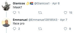 苹果的抗疫举措得到了很多网友称赞和感谢,不过也有一些人给面罩加了一些大家熟悉的广告语: