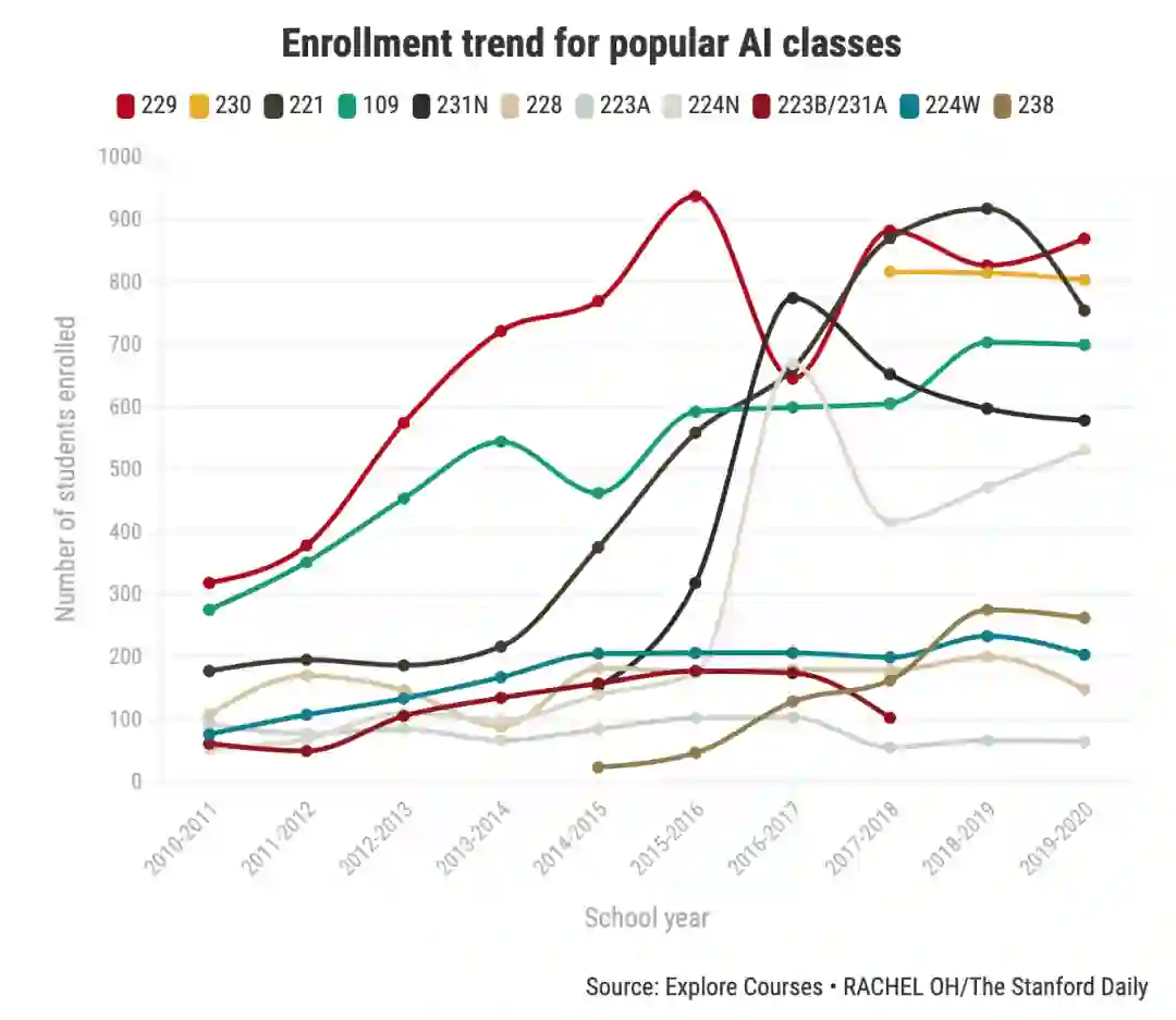 去年,斯坦福Daily’s Data Team数据团队精心设计了一个课题,对十年来斯坦福所有与人工智能有关的计算机科学课程进行了分析,想要了解这个行业是如何变化的,以一窥这个行业十年来的发展。