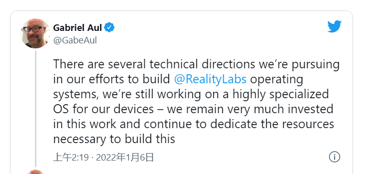 报道发布后,Meta 现实实验室副总裁 Gabriel Aul 在推特上表示,公司“正在发展这个团队,而不是缩小它”,并附上了一个指向 Meta 招聘页面的链接。Aul 还表示,公司“仍在为我们的设备开发高度专业化的操作系统”。