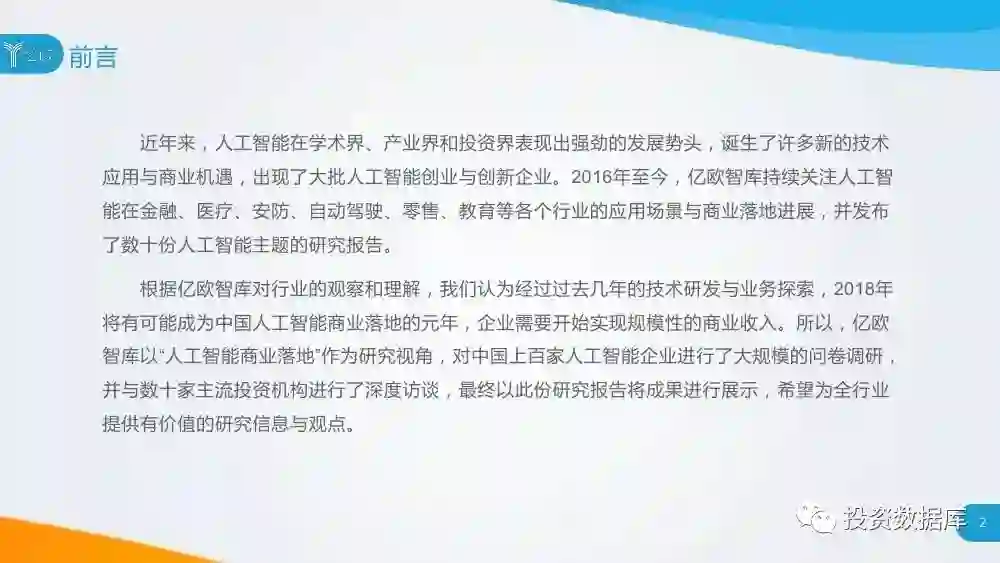 亿欧智库以“人工智能商业落地”作为研究视角,对中国上百家人工智能企业进行了大规模的问卷调研,并与数十家主流投资机构进行了深度访谈,最终以研究报告、企业榜单的形式,将成果进行展示,希望为全行业提供有价值的研究信息与观点。