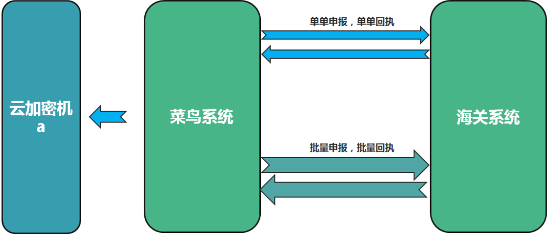 由于海关各个节点大多采用MQ+FTP的技术架构,文件数的个数会影响整体通道消费能力。另外总署的56号公告要求四单申报进行加签操作,随之带来的将是验签成本的增加。为减轻总署通道压力,并提升验签能力,我们采用了批量申报的策略,简而言之就是将多个订单聚合到一起进行申报,一次加签操作,一次申报动作。如下: