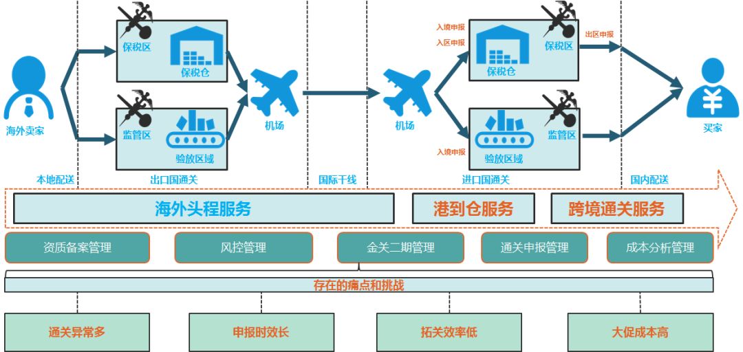 如下是整个通关全链路业务流程,包含资质备案、风控、出入区、跨境通关、税汇等核心领域。整个链路交互节点繁多,不同国家,甚至不同监管区在申报模式,交互方式,通关能力上都存在很大差别,另外由于申报链路冗长,任何一个节点出现抖动都有可能导致整个通关发生异常,进而导致申报时效拖长,为保障用户能够正常通关,我们往往需要投入更多的成本去解决申报链路过程发生的种种问题。所以,如何有效使用海关通关能力,给到跨境商户稳定的、高效的、统一的一站式通关解决方案?这是我们需要攻克的核心难题。