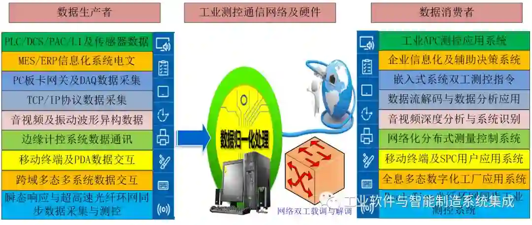 工业智能化、工业信息化、工业视觉与声音及振动波形多态异构数据通讯系统、工业多态数据中继转发通讯系统组件等基础公共通讯组件共同组成了完备的全息多态数字化工厂系统,将不同总线、不同类型传感器、不同编码类型的数据通过一套系统集成起来并通过工业以太网以数字化信号的方式实现不同系统间的数据互联互通。通过工业以太网实现与工业行业APC模型测控系统的高速数字化网络双工系统集成;匹配高性能数据库系统构建企业级多态数据中心。支撑全局数据应用,统一数据接口标准、打通流程、深度融合实现产业链数字化。DEP-ICT System 基于CPS架构的以太网统一系统多态数字基带网络化数据通讯系统为冶金工业基于网络的实时测控及新一代冶金智能工厂提供完整的数据支撑。