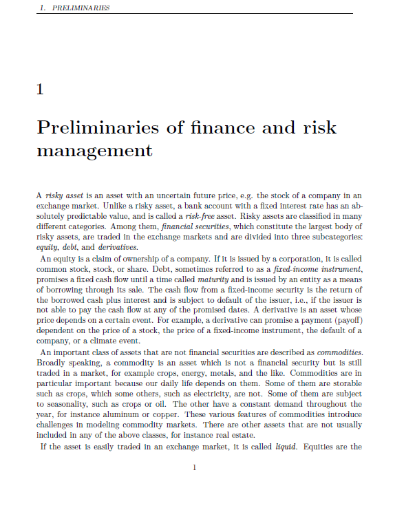 金融数学导论:概念和计算方法是金融数学的入门课程,侧重于模型的概念理解和问题解决。它包括风险管理所需的数学背景,如概率论、最优化等。这本书的目标是向读者展示广泛的基本问题,其中一些强调分析能力,一些需要编程技术和其他侧重于统计数据分析。此外,它还涵盖了主流金融数学教材之外的一些领域。如CCP的边际账户设置和系统风险,以及模型风险的简要概述。为了帮助学生为本书的考试做准备,我们还提供了一些练习和例子。
