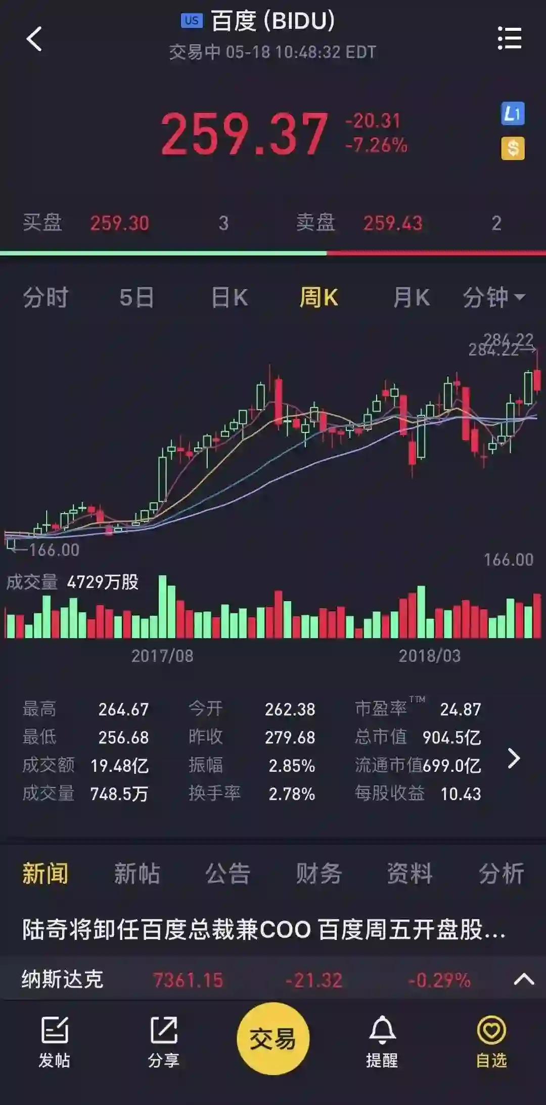 消息宣布后,截至发稿,百度股价开盘后一度大跌8.22%,市值蒸发近80亿美元。