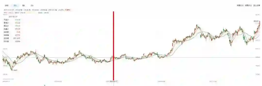 红线为陆奇加入百度的时间,右边为自他加入后百度迄今为止的股价走势