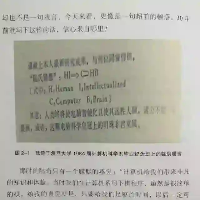 1987年,陆奇还在复旦大学上学,瘦小,精干,喜欢思考一些玄奥的问题,同学们都喊他“陈景润”。毕业时,陆奇在毕业纪念册上写下了临别赠言:谨献上本人最新研究成果,与列位同窗惜别。“陆氏猜想”:人类终将使电脑智能化且使其远胜人脑。