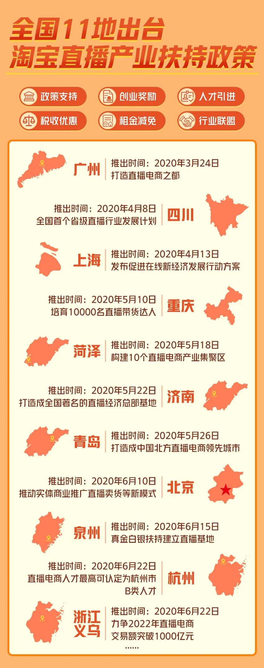 据不完全统计,今年来,共有广州、上海、杭州等11地相继推出扶持政策,它们在发展直播产业上各有禀赋。