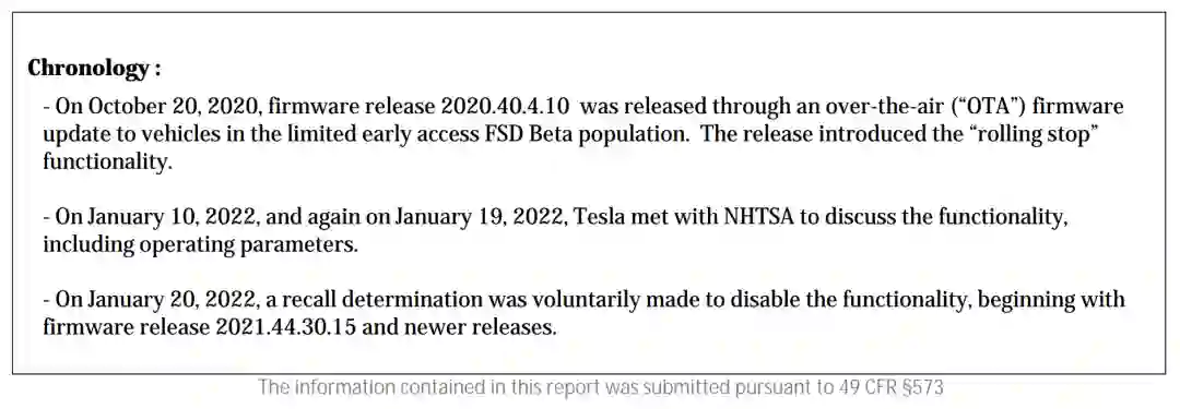 自 2020 年 10 月以来,「rolling stop」功能已成为「full soft driving」软件的一部分,时间超过一年。一些车主报告说,他们的车在一些停车标志前停不下来,但不清楚为什么会发生这种情况,也不清楚这些车的速度到底有多快。