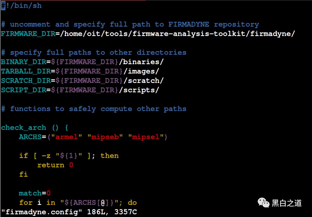 要安装Firmadyne,需要进入Firmadyne目录,然后打开firmadyne.config,里面的内容如下: