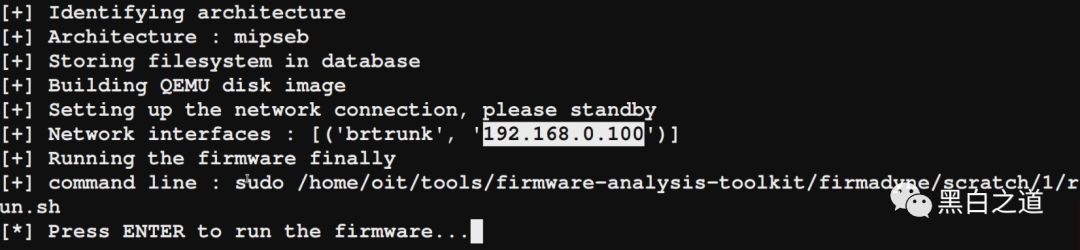 固件分析工具包其实就是对Firmadyne的简单的封装,自动化了模拟新固件的过程。