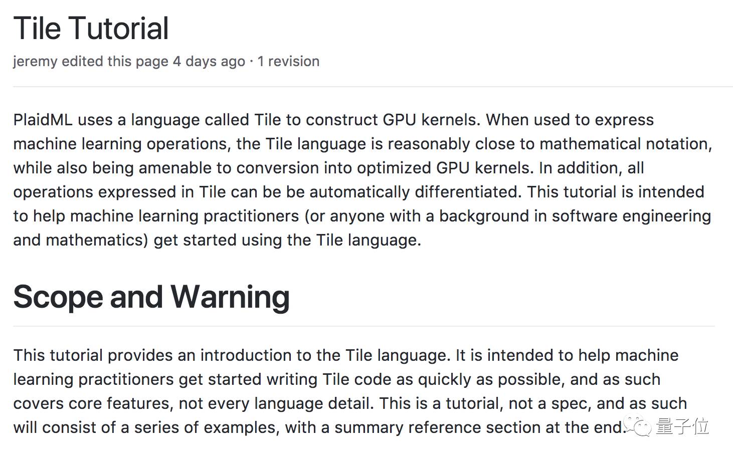 https://github.com/plaidml/plaidml/wiki/Tile-Tutorial