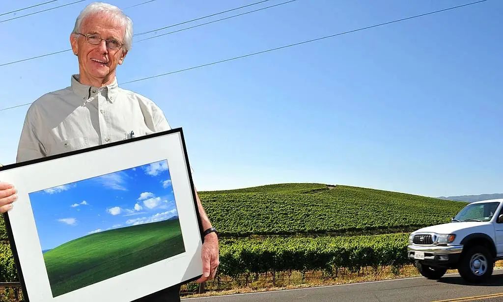 比如 Windows XP 蓝天草地壁纸,虽然这张图的后期渲染味很重,但它其实是摄影师 Charles O'Rear 于 1996 年在加州索诺玛县拍摄的,后来才被微软看中,并买下了图片版权。