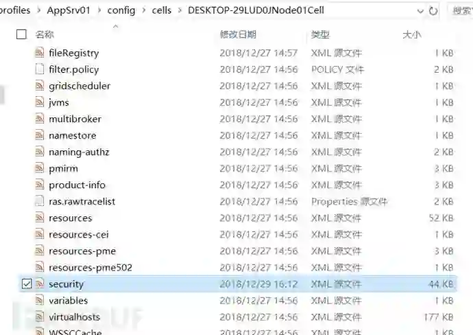 3、Weblogic配置藏在config\jdbc下,WebSphere分散保存在resources.xml和security.xml中。