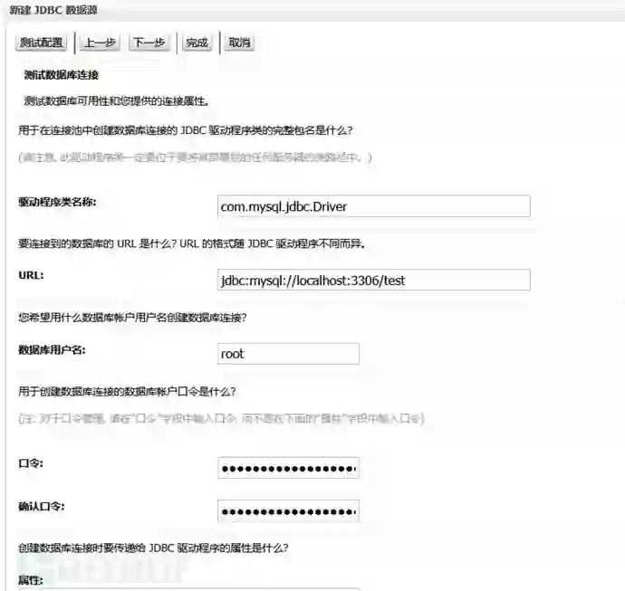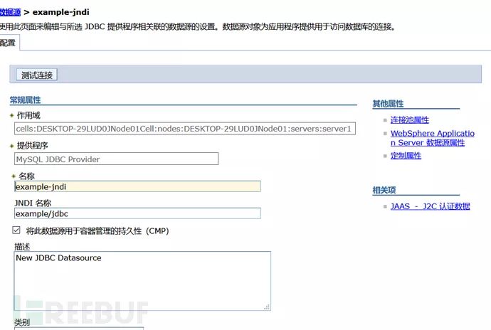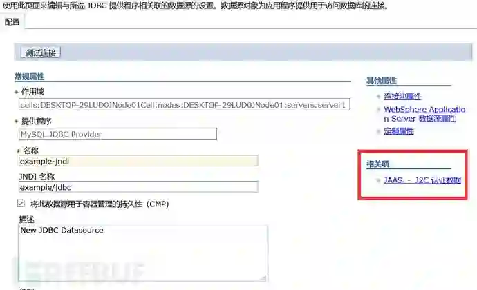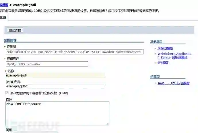 17)确定之后返回JNDI数据源配置,保存到主配置。点击测试连接,只要没有错误就OK,警告可以忽略。