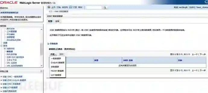 1)WebLogic当配置好JNDI数据源后,对应的配置会存放到域目录的config\jdbc下。(域目录由WebLogic由用户指定,安装或控制台皆可配置,我安装的时候直接无脑下一步自然就在这里了C:\Oracle\Middleware\Oracle_Home\user_projects\domains\base_domain)