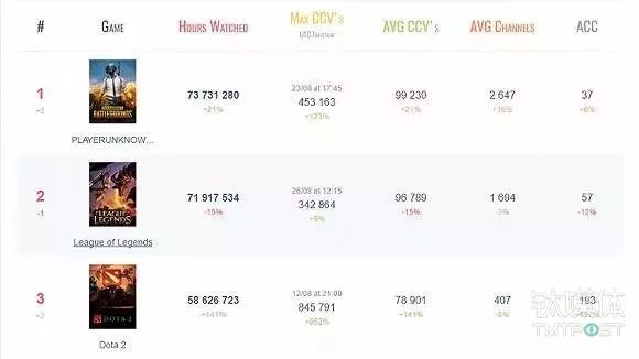 根据Gamoloco网站统计的消息,8月份,《绝地求生》在Twitch的观看时长已经超过了7300万小时,打破了《英雄联盟》一直保持的记录。在此之前,《英雄联盟》已经连续称霸了34个月。暴雪精心打造的《守望先锋》都没有做到的事情,让《绝地求生》这款游戏做到了。