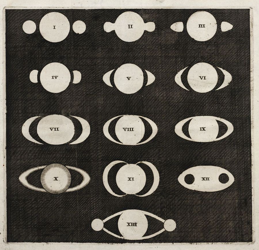 图2. 对土星与土星环的早期观测与猜测,来自伽利略。(图源:Linda Hall Library of Science, Engineering & Technology)