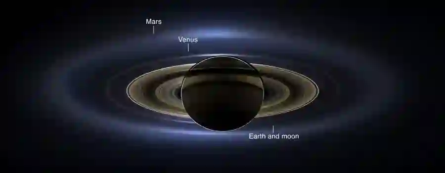 土星环,土星,地球-月球,金星,火星(卡西尼飞船拍摄)(图源:photojournal.jpl.nasa.gov)