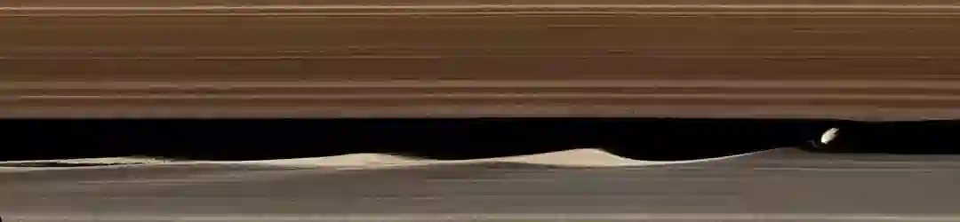 旅行者号和卡西尼号还直接观察到了通过引力产生土星环缝的小卫星,诸如产生恩克环缝(Encke Gap)的小卫星Pan和产生基勒环缝(Keeler Gap)的小卫星Daphnis(图5),洛希极限以外的纤细F环如何由其轨道内外的两颗小卫星(Pandora & Prometheus)引领,以及可能是正在土星环中在形成的小卫星Peggy。