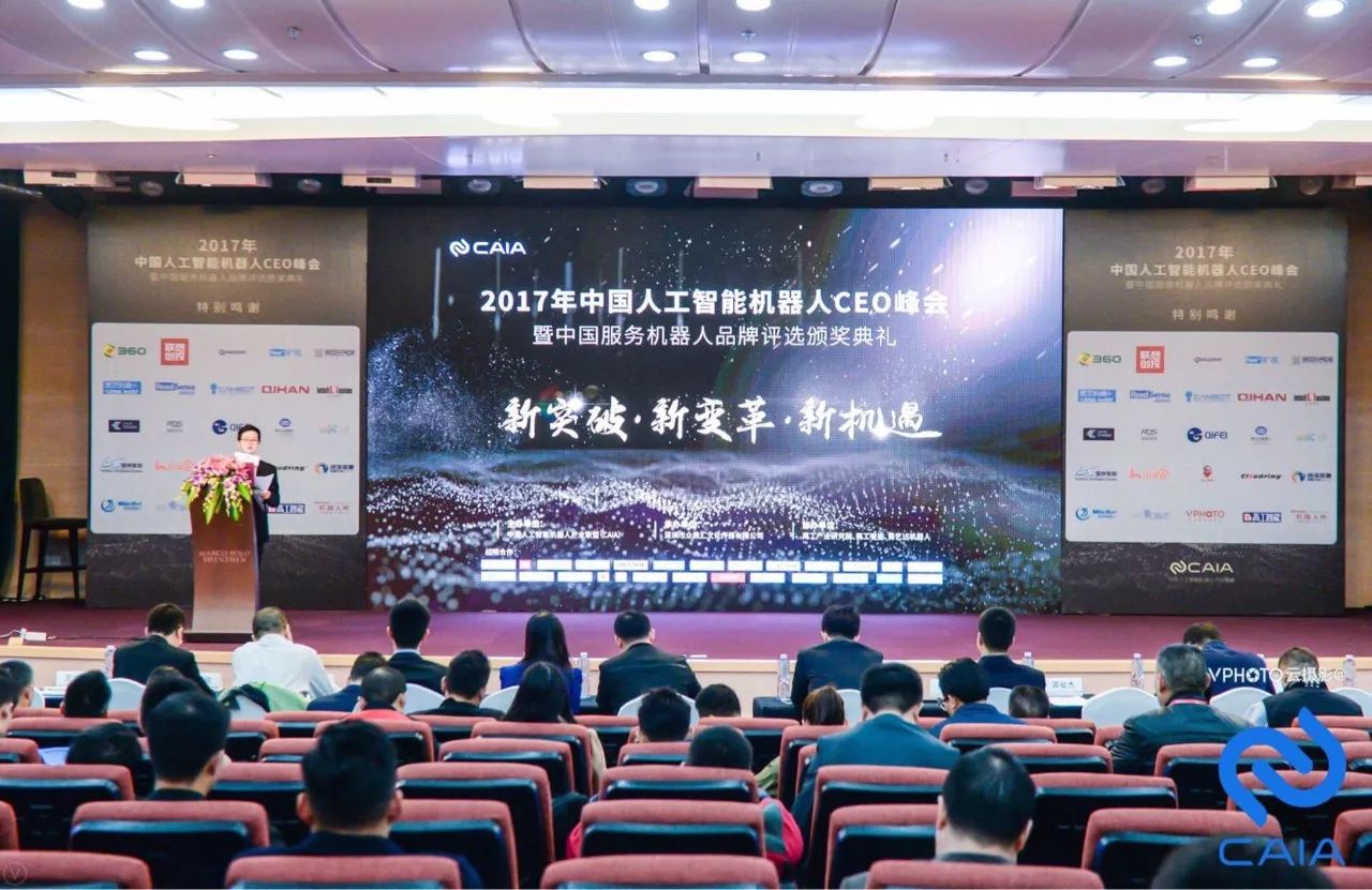 12月26日,由中国人工智能机器人产业联盟(CAIA)主办的“2017中国人工智能机器人CEO峰会”暨“2017年度•中国服务机器人品牌评选颁奖典礼”圆满结束。来自人工智能与机器人领域的CEO高层、投资机构、学术界大咖超过400人出席了这次峰会。