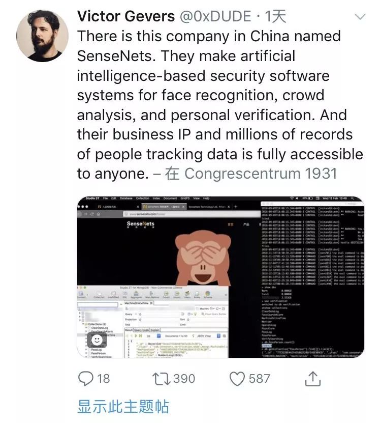 GDI基金会荷兰安全研究员Victor Gevers指出,这家公司的数据库自去年7月以来就将其人脸识别数据库对外开放。