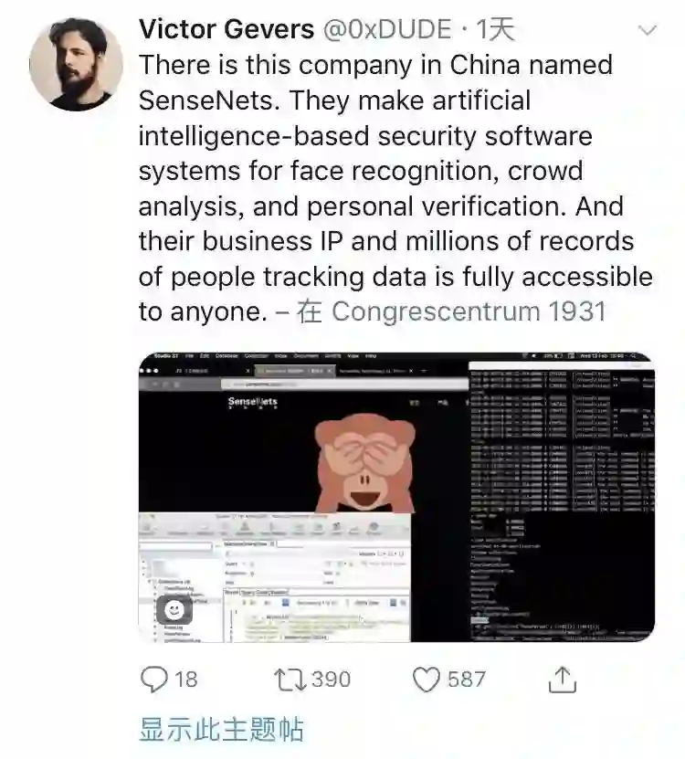 为此,Gevers连发多条推特报道此事,在推文中,他指出这家名为SenseNets的中国公司研发了一款基于AI的安全软件系统用于人脸识别、个人验证等。