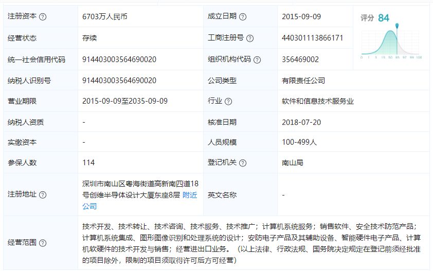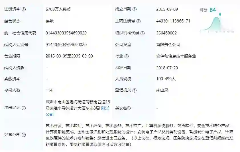这家公司名为深网视界(SenseNets),数据库中的身份证号等数据从哪来,我们不得而知。但是从天眼查中可以看到,经营的范围中有一条:安防电子产品及其辅助设备。