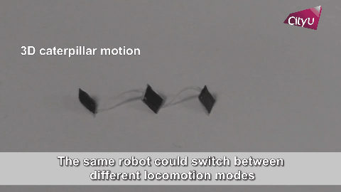 同一个 M-spray 涂层的毫米级机器人可以在不同运动模式间切换。