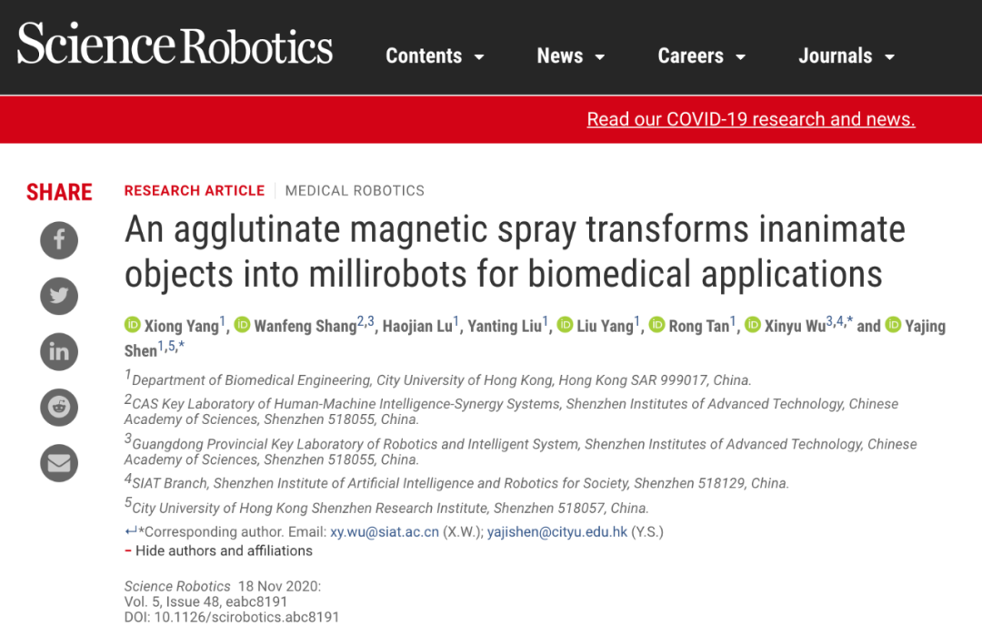 ” 为题,于 11 月 19 日在线发表在科学杂志《科学机器人》(