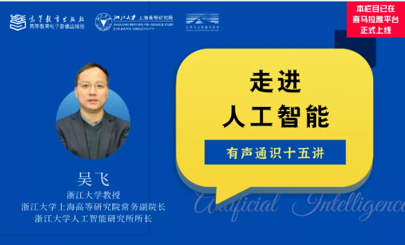 1月26日,由高等教育出版社出品,浙江大学上海高等研究院联合上海人工智能实验室智能教育中心共同打造的人工智能前沿科普有声通识数字图书——《走进人工智能》正式在喜马拉雅平台上线。主理人为浙江大学上海高等研究院常务副院长、浙江大学人工智能研究所吴飞教授。由CCF多媒体专委会主任、清华大学朱文武教授对该读物进行审读,并提出宝贵意见。朱文武教授指出人工智能的科学普及十分重要,《走进人工智能》通识读物从人工智能历史发展脉络、技术手段形态、学科交叉研究和创新人才培养四个方面讲授了人工智能基础知识。朱文武教授对本读物进行了高度评价,指出本读物“产品内容丰富、观点正确,包括了人工智能历史发展脉络、人工智能不同技术手段、AI for Science 创新研究和可计算思维等。尤其值得指出的是,产品将科学探索、人物故事、人才培养等结合起来,可听性强、可读性强。《走进人工智能》通识读物是一部优秀的作品。”